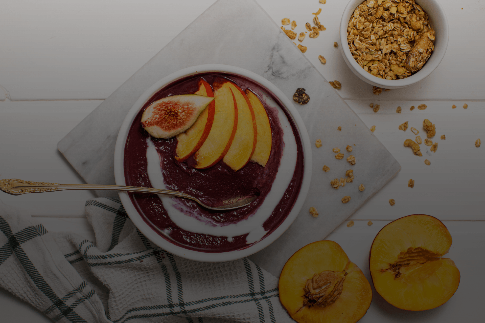 Peaches are a source of vitamins A and C, as well as phenolic compounds that help combat oxidative stress and strengthen the immune system. Their aromatic flesh and velvety texture bring smoothness and harmony to the frozen açaí, while creating an attractive visual contrast with the purple tones of the sorbet.